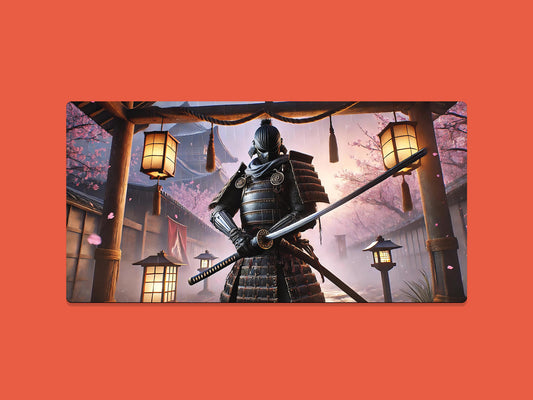 Japanese Samurai with Cherry Blossoms Gaming Mat - Desk Mat - 3 SIZES