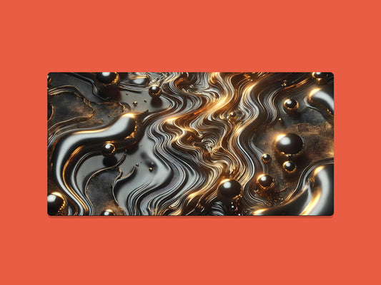 Liquid Metal with Fluid Gold Waves Gaming Mat - Desk Mat - 3 SIZES